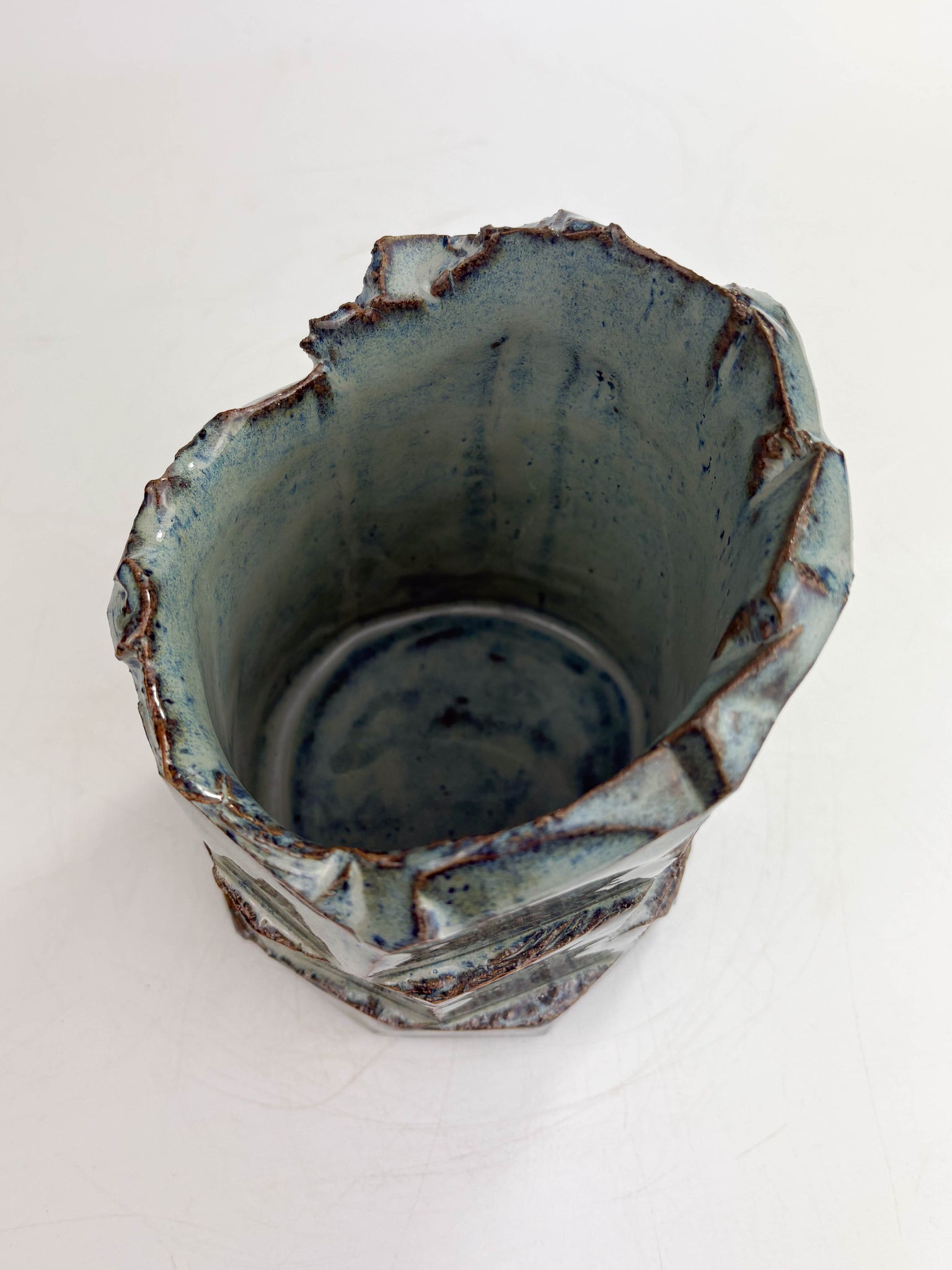 Created from a combination of hand building and Kurinuki techniques, this unique vase has been torn and carved to create a heavily textured statement piece