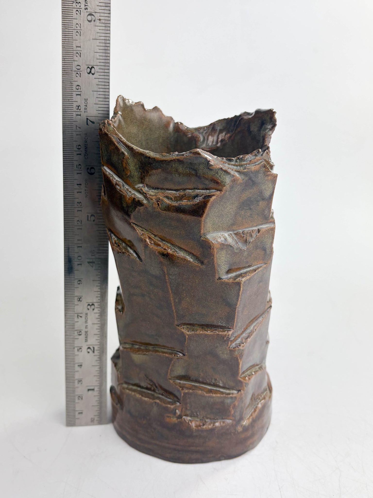 Created from a combination of hand building and Kurinuki techniques, this unique vase has been torn and carved to create a heavily textured statement piece