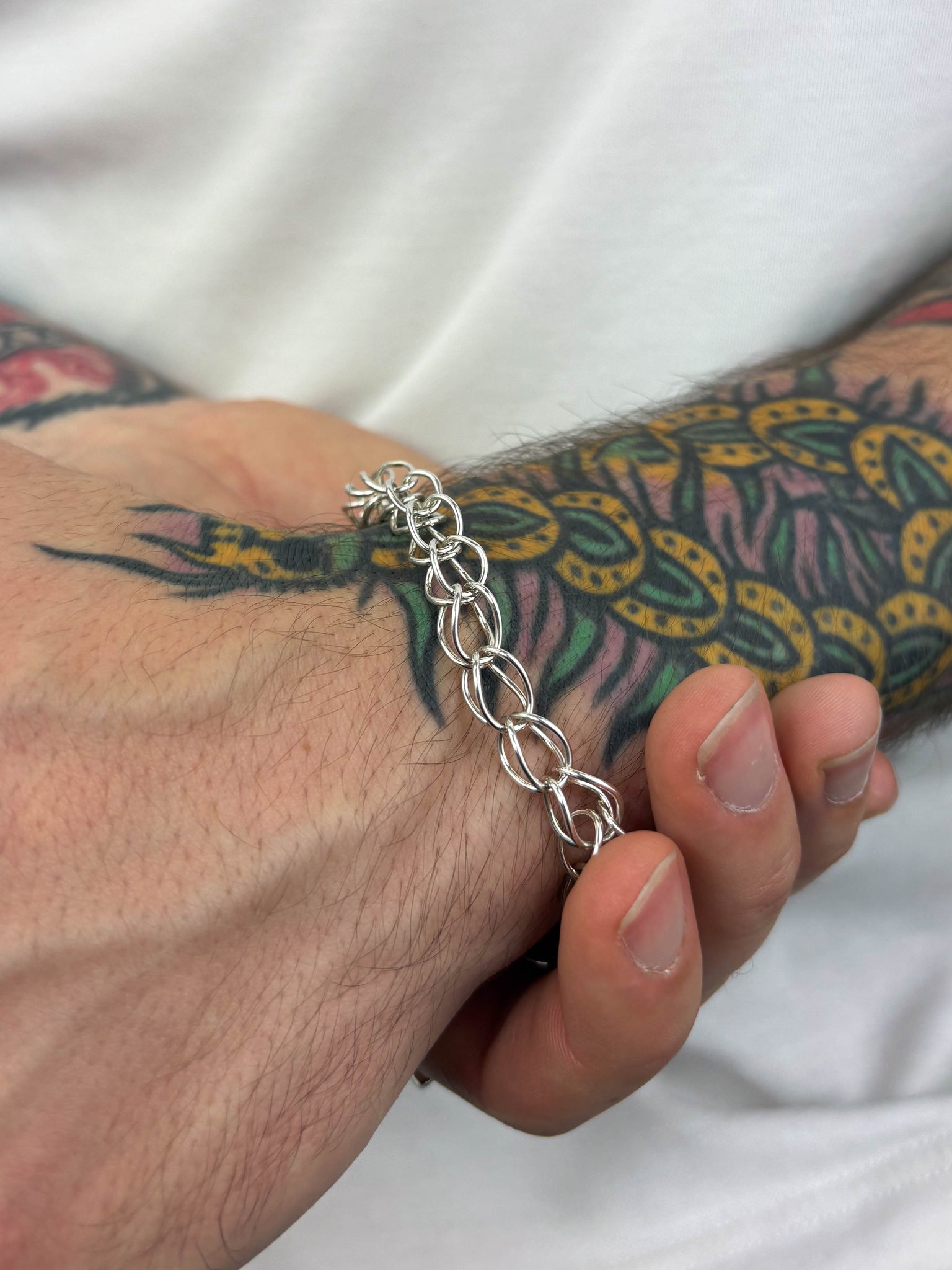 Using the traditional method of Loop in Loop chain, individual silver links are threaded together to make these beautiful chain bracelets. A silver chain to suit anyone.